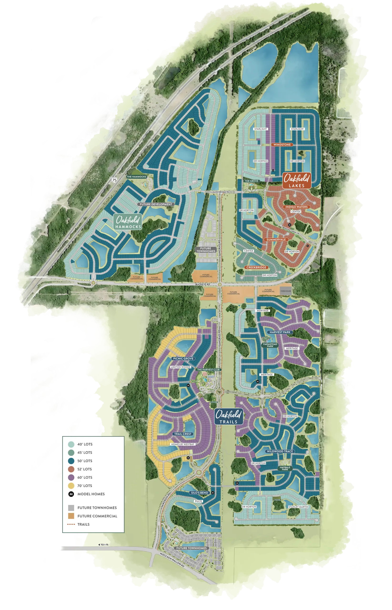 Fees: The HOA fees vary by neighborhood—Oakfield Trails and Oakfield Lakes each have their own guidelines you can view for more details.